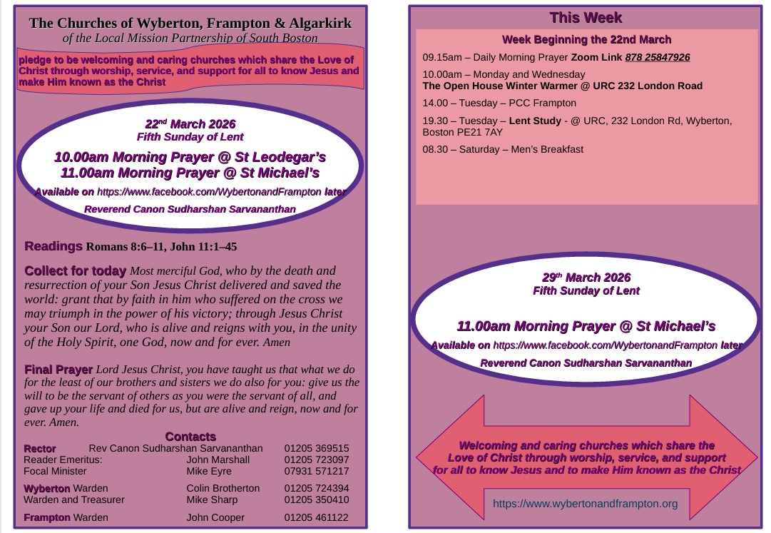 22ND MARCH SUNDAY SERVICE 10AM @ ST LEODEGAR’S. 11AM @ ST MICHAEL'S.